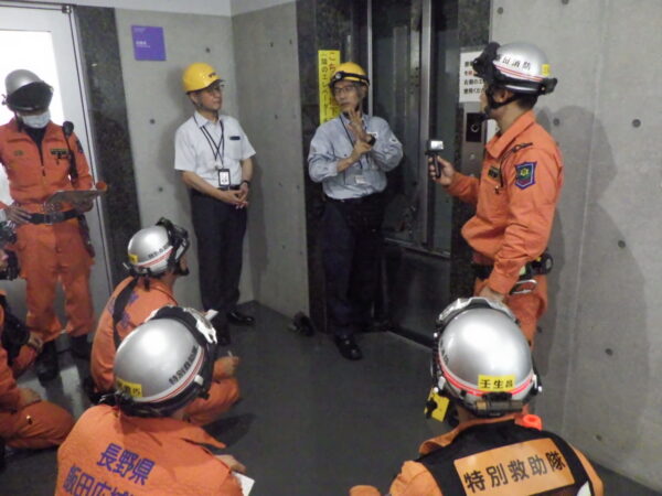 飯田消防署特別救助隊は、7月30日(火)、高羽合同庁舎においてエレベーター事故対応救助訓練を実施しました。 この訓練は、震災対応の一環として、エレベーターに乗員が閉じ込められた場合の救出手順及び救出方法の確認を目的として…